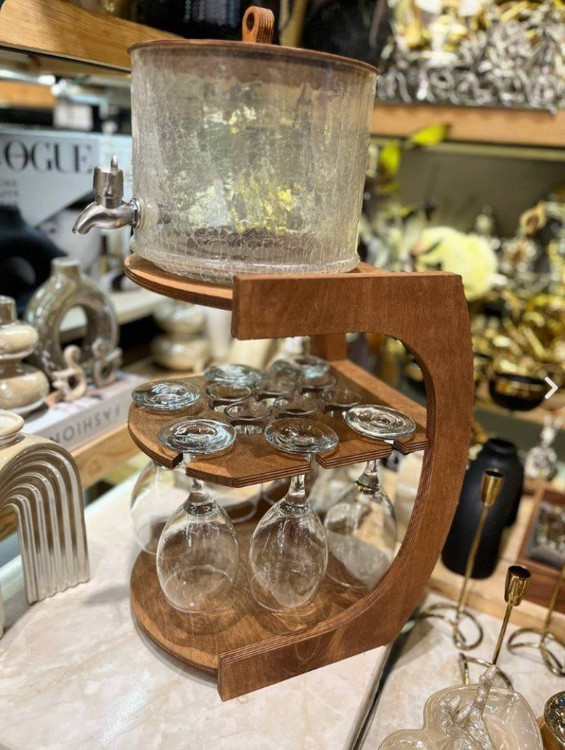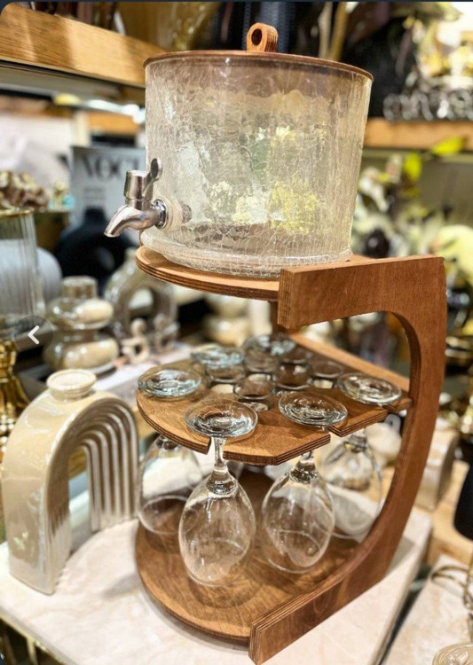کلمن سه طبقه چوبی با شات و گیلاس یکی از خاصترین انتخابها برای پذیرایی شیک و متفاوت است. طراحی سهطبقه این کلمن باعث میشود بتوانید انواع نوشیدنی سرد یا شربت را بهصورت همزمان سرو کنید و جلوهای منظم و جذاب به میز پذیرایی بدهید. همراهی شات و گیلاس در این ست، سرو نوشیدنی را آسانتر و حرفهایتر میکند.
