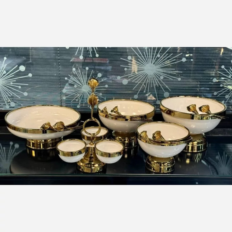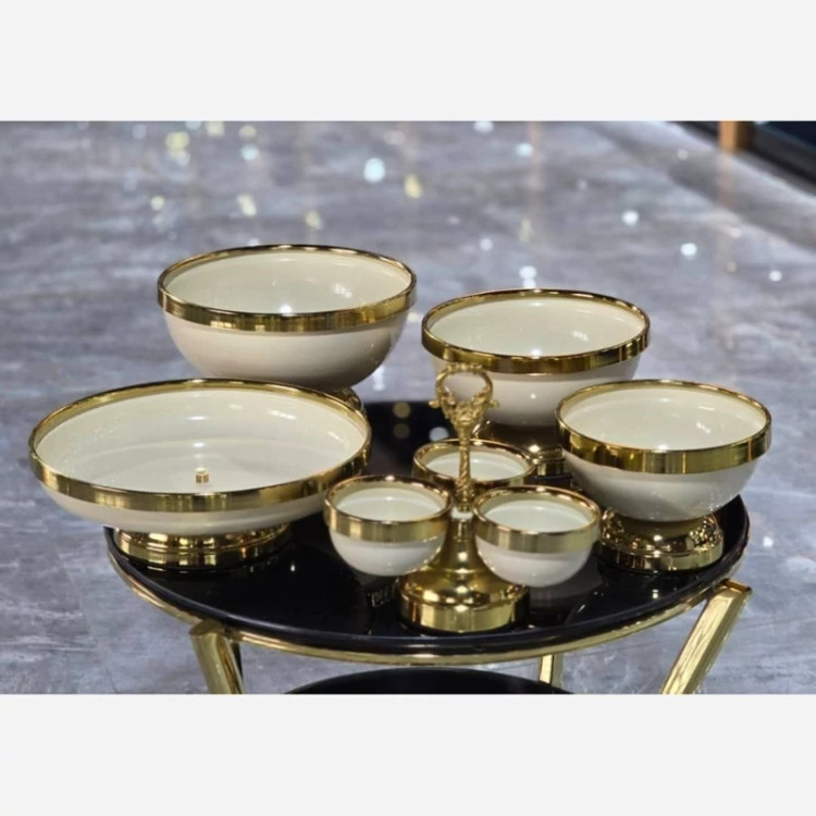 ❌ 5تیکه می باشد مدل لیلیوم ❌ ♦️ زیر قیمت کل بازارعمده ایران و تولید کننده ♦️سرویس پذیرایی 5تیکه ❤️رنگ کرم .مشکی .سفید ✅میوه خوری .شیرینی . آجیل .شکلات . اردو خوری ✅ جنس فلز و آبکاری فورتیک. و رنگ استاتیک 🔸 بهترین کیفیت بازار و سنگین ترین کاره بازار 👌