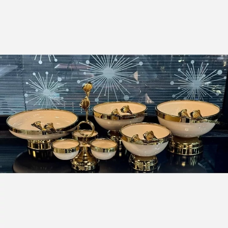 ❌ 5تیکه می باشد مدل لیلیوم ❌ ♦️ زیر قیمت کل بازارعمده ایران و تولید کننده ♦️سرویس پذیرایی 5تیکه ❤️رنگ کرم .مشکی .سفید ✅میوه خوری .شیرینی . آجیل .شکلات . اردو خوری ✅ جنس فلز و آبکاری فورتیک. و رنگ استاتیک 🔸 بهترین کیفیت بازار و سنگین ترین کاره بازار 👌